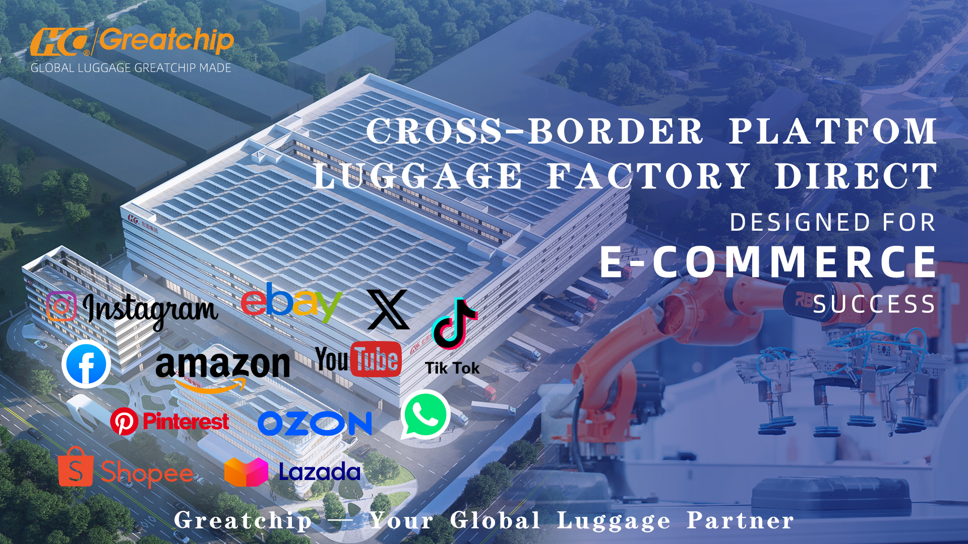 Founded in 2015, Greatchip is headquartered in Xingan County, Ji'an City, Jiangxi Province, China. Covering an area of over 100,000 square meters, it is a world-leading integrated luggage service enterprise integrating R&D, production, sales, warehousing and logistics. We specialize in providing one-stop luggage solutions for global customers, with an annual output of over 4 million pieces and products sold well in more than 100 countries and regions.